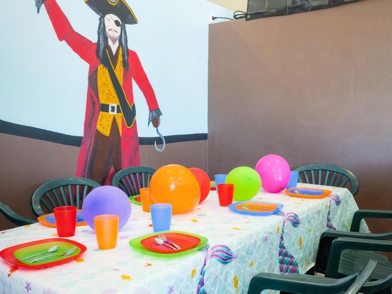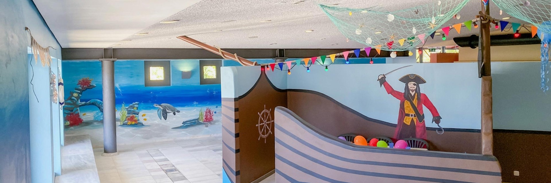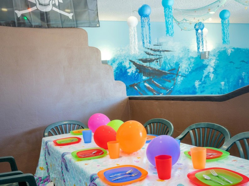 Ganz einfach! In unserem Ticketshop können Sie sowohl eine Feier im im Piratenschiff hinter der Rutsche als auch am Nichtschwimmerbecken (Rutschen Becken) buchen.