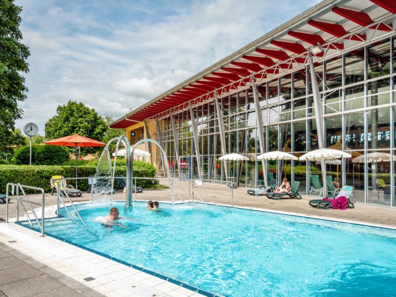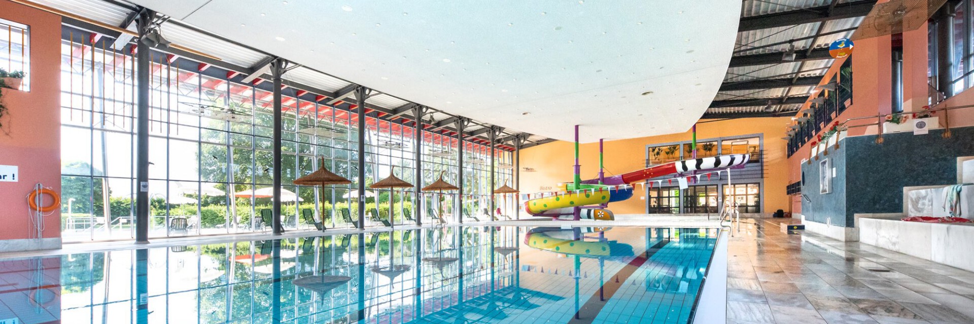 Schwimmer können im 25-Meter-Sportbecken ihre Fitness trainieren, Abenteuerlustige freuen sich über unsere 44 Meter lange Rutsche, Spaß und Entspannung gleichermaßen bietet das Warmbecken mit Schwimmkanal ins Freie und die ganz Kleinen können quietschvergnügt im Baby Pool planschen.